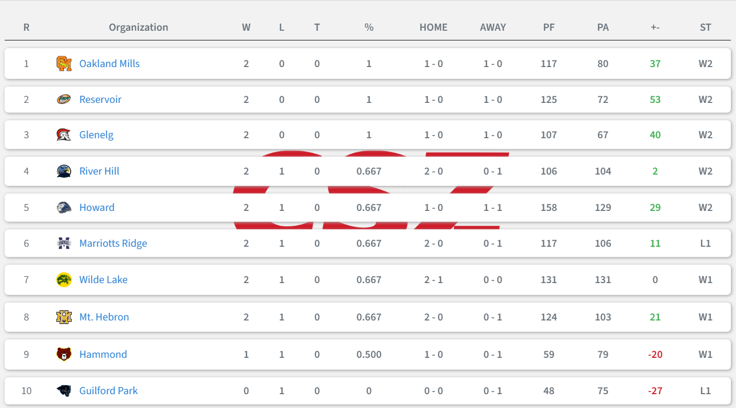 Undefeated Marriotts Ridge faces undefeated Oakland Mills tonight in a fight to be the only county team left without a loss.
